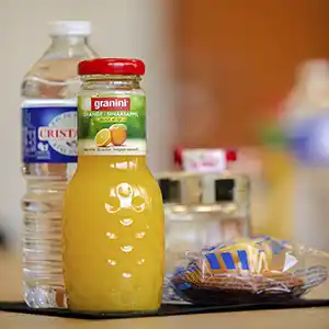 Pause douceur (eau minérale, jus d’orange, madeleine)